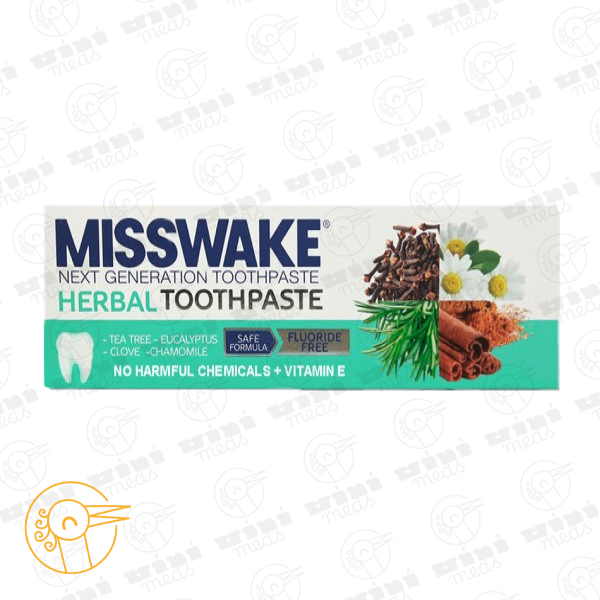 خمیر دندان گیاهی میسویک بدون فلوراید بوده و حاوی ترکیبات موثر گیاهی از جمله عصاره میخک، روغن درخت چای، روغن اکالیپتوس، عصاره بابونه است. در ترکیبات خمیر دندان گیاهی بدون فلوراید میسویک از ویتامین E نیز استفاده شده است.