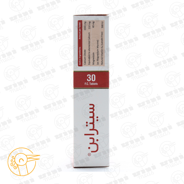 سیترابن در هر قرص حاوی 210 میلیگرم کلسیم خالص (المنتال) به فرم کلسیم سیترات است که به تامین کلسیم مورد نیاز روزانه کمک میکند.