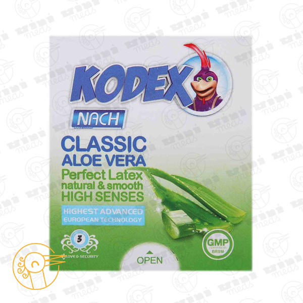 کاندوم کدکس مدل کلاسیک آلوئه ورا دارای ماده روان کننده بوده و موجب بالا بردن لذت جنسی میشود. این کاندوم با لاتکس طبیعی و با کیفیت فوقالعاده بالا جهت حفاظت، اطمینان و راحتی آقایان در نظر گرفته شده است. ناچ کدکس تنها کاندومی است که از لاتکس صد در صد طبیعی تولید میشود. به همین علت کاملا ضد حساسیت بوده و در آن هیچ گونه ماده پلاستیکی به کار نرفته است. خاصیت ارتجاعی این محصول یکی از مزیتهای دیگر آن است که موجب جا نماندن کاندوم در واژن میشود. با خرید کاندوم ساده سه لایه kodex از پارگی محصول خبری نیست و رایحه مطبوع آن نیز از آزردگی خاطر زوجین جلوگیری میکند. همچنین این محصول دارای نوک ذخیره جهت جمع آوری اسپرم و افزایش امنیت و اطمینان بیشتر است.